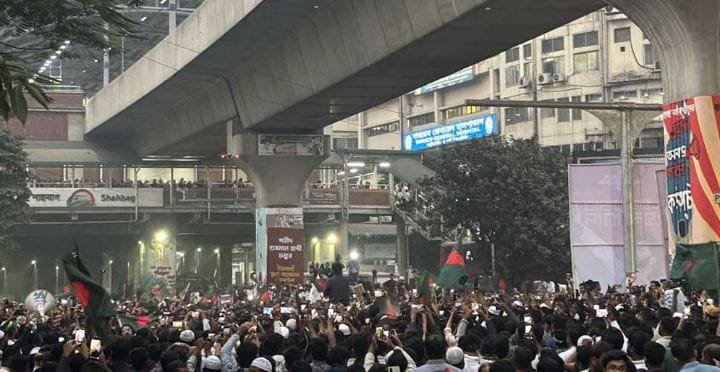 শনিবার (২০ ডিসেম্বর) বিকাল ৪টা থেকে তারা সেখানে জড়ো হতে থাকেন। হাদি হত্যার প্রতিবাদে ও দায়ীদের গ্রেফতার-বিচারের দাবিতে তারা সেখানে অবস্থান নিয়ে বিভিন্ন স্লোগান দিচ্ছেন